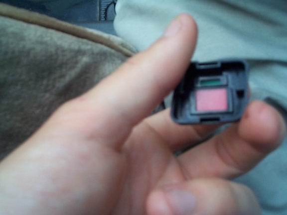 Pop-out the blue piece like before. Be careful there will be a little green coloured strip there too. The sanding and painting portion is just like you did on the first button.