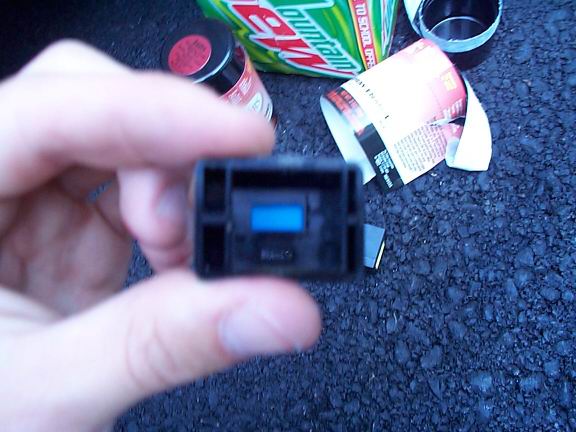 Push the plastic part out from behind and sand off the blue