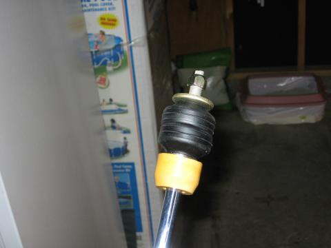Now that the shaft is exposed, you take a pair of vise grips and grasp it good. Then you unscrew the top screw so you can gain access to the rubber top mount. WARNING: WHEN DOING THIS, THAT BOLT WILL SHOOT OFF WITH A PURPOSE. MAKE SURE YOU DO NOT HAVE YOUR HANDS IN THE WAY WHEN IT DOES. ALSO HAVE A PLACE TO FIRE YOUR BOLT TO.
