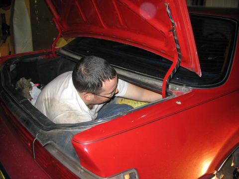 So we get back to work installing the suspension. Here is me in the trunk working on the back assembly.