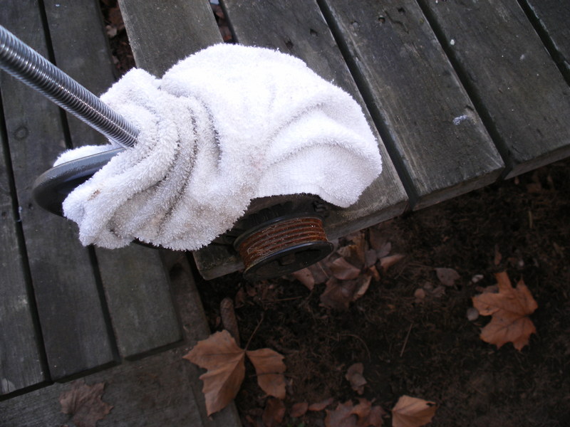 Throw a rag over the case of the alternator to ensure that metal particles and dust and shit don’t get in there. That’s not what you want. Make sure the rag won’t get caught up in the pulley somehow. I recommend a rag because depending on how long this takes you, the alternator might get a little toasty from having its guts spinning around. A plastic bag might not be the best thing for this job because, duh, it might melt. Whatever you use, secure it so that the pulley won’t grab it and try to take it for a walk.
