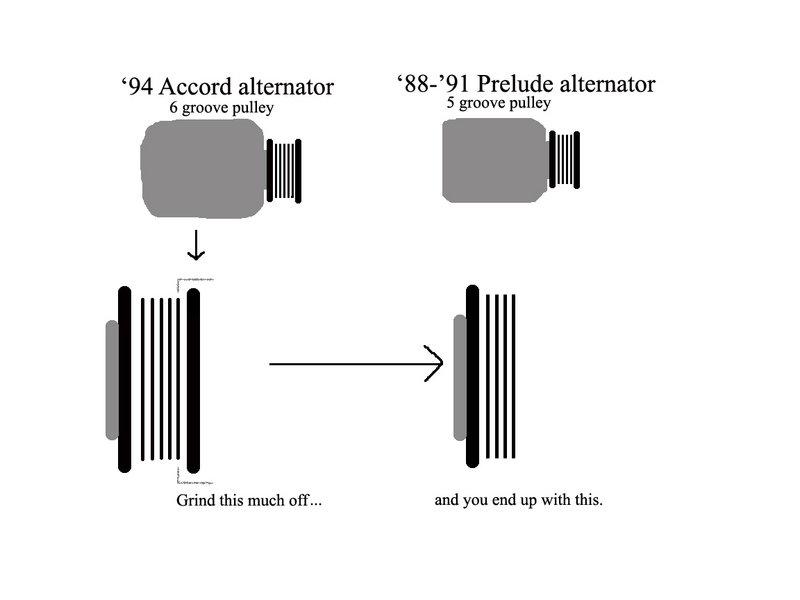 This write-up is a little more comprehensive than originally intended. If you already know all about the shortcomings of the '94 Accord alternator pulley, feel free to skip right to the meat, which is section 5.
