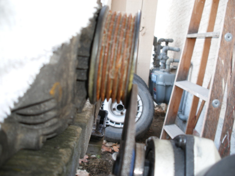 When we start grinding the pulley, we want to hold the angle grinder so that the disc is perfectly parallel to the face of the pulley, kinda like this: