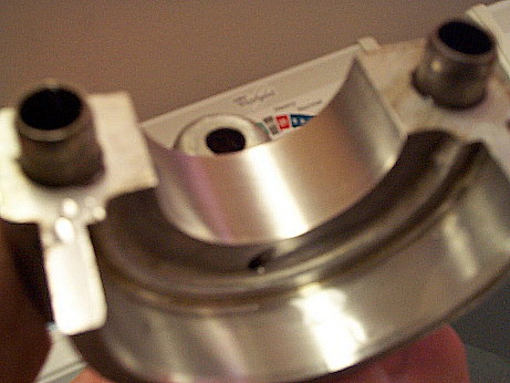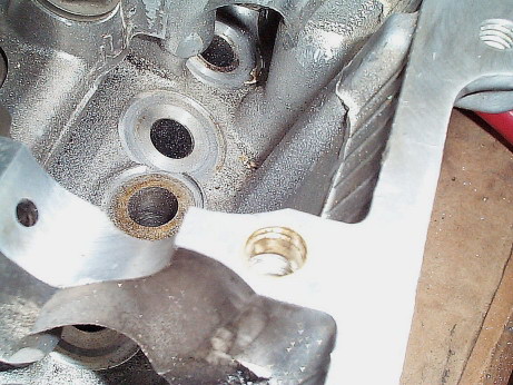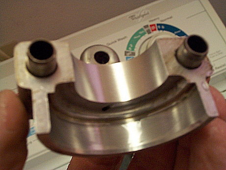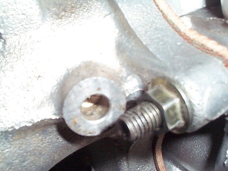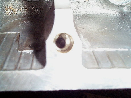 Here's the pics, a little bright but you can see the brass fitting. In the first pic you can also see in the hole where my initial attempt at drilling out the bolt went off course: