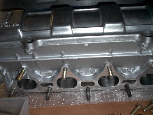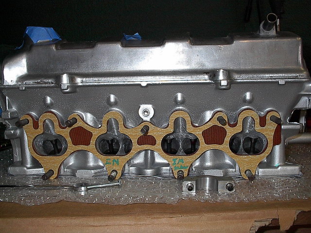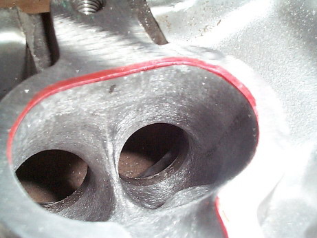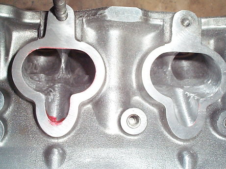 I bolted the garolite onto the manifold and matched it to that first. After that I set it on the head and used a red marker to trace around the inside to see what material I needed to remove from the head to match it: