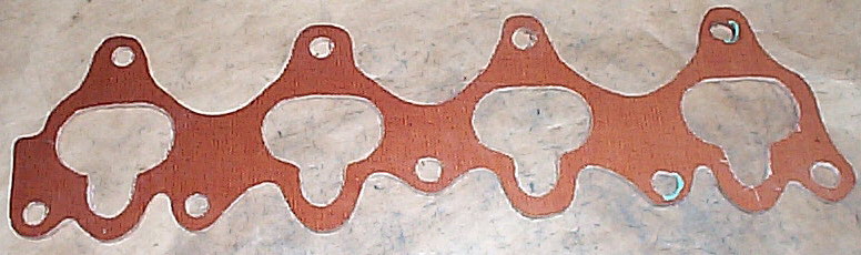 Here's a heat resistant gasket I make for the intake manifold. I first made a new gasket off the manifold with the gasket making stuff you can get at auto stores, then set that on the garolite and traced around it. After that I just cut it out.