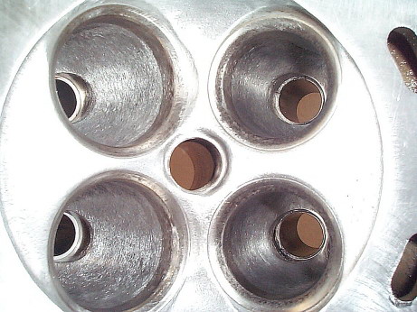 Here's after I finished, lightly went over the inside of the cyl with a grinding stone to smooth it out. Blended the inside of the cyl with the valve seats, so there is little or no "lip". Finally I used a coarse crossbuff to smooth it all out.