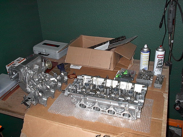 Sent the head back to the machine shop. Surfaced, 3 angle valve job, new guides, springs and retainers installed. Then another clean.