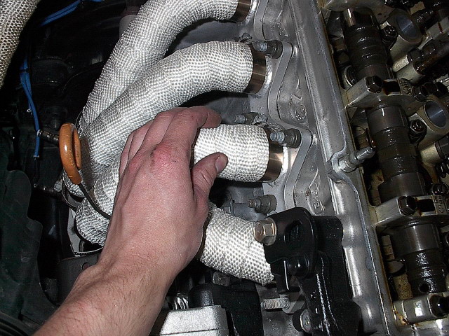 I'm a big fan of exhaust heat wrap. That exposed flange would burn me if I touched it in this pic, but the wrapped header tubes are only warm to the touch: