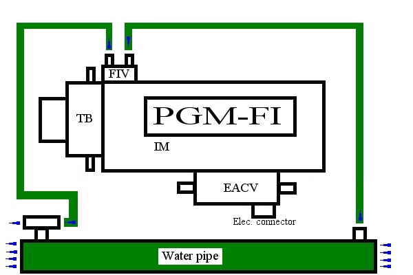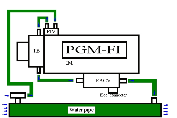 The EACV is what the ECU primarily uses to control the idle. It's mostly used to boost the idle when the P/S system is being used and when you turn on the A/C. The coolant lines on this are just like the ones going to the TB, totally useless.