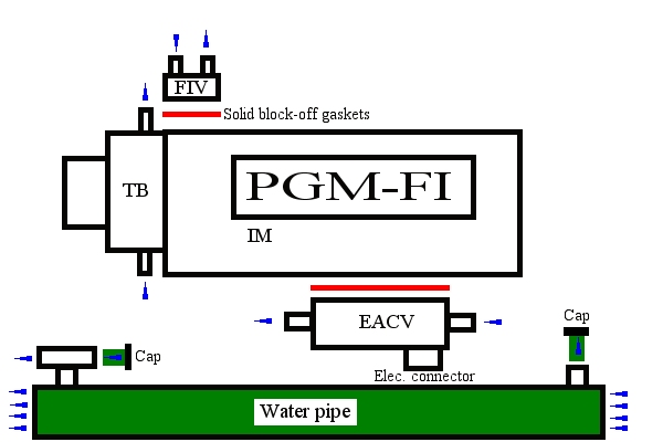 You cap off the hoses coming out of the water pipe and make solid gaskets to go between the IM and FIV+EACV.