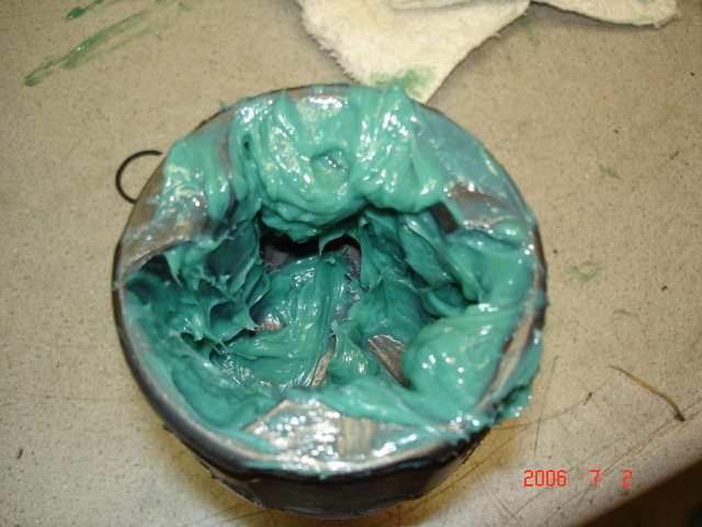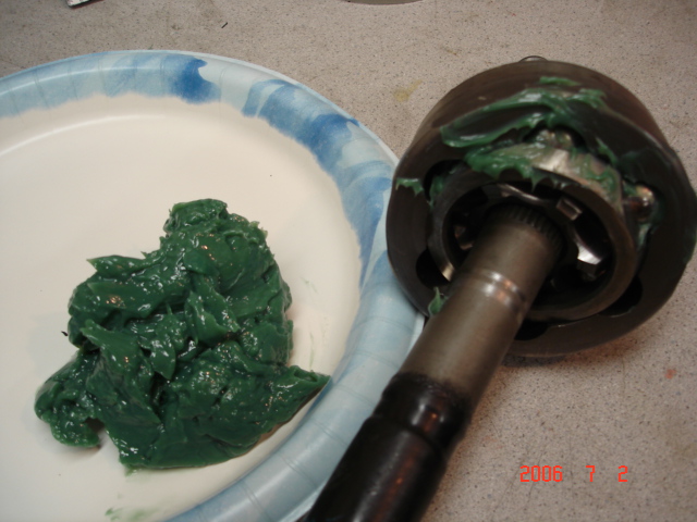 After completely packing the bearings spread the remaining grease inside the boot closer to the large