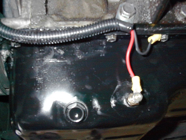 Here's the sensor all hooked up. I grounded to one of the oil pan bolts: