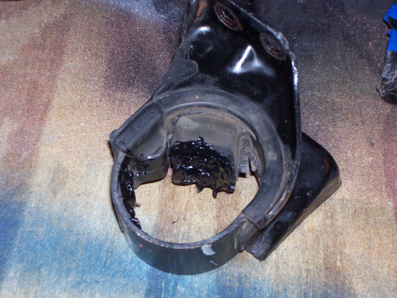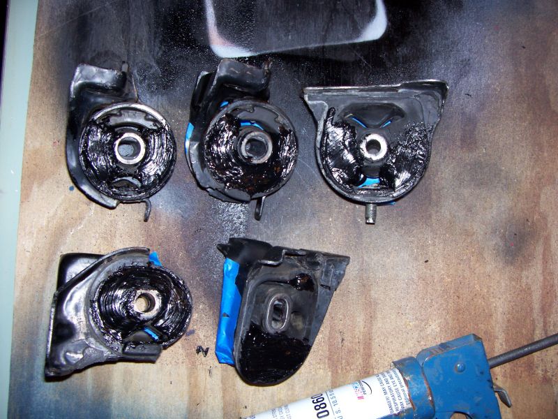 Disassemble the mounts and clean them with spray. I used carb and throttle body cleaner. Just soak them and then blast the crap from the rubber part. A dark liquid should result.