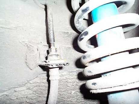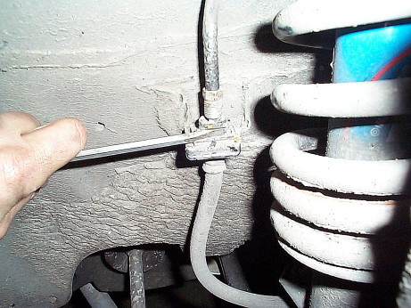 The brake line is like the front but this one only has 1 12mm bolt holding it to the shock.