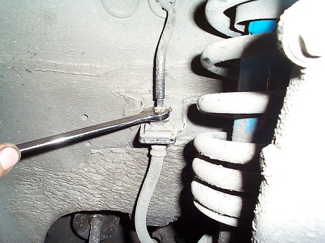 To get the brake lines off there are 2 10mm bolts holding the knuckle bracket on and 2 brackets on the shock with 12mm bolts.