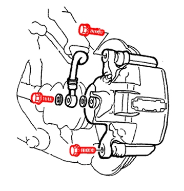 1. If you only intend to replace the rotor and brake pads skip disconnecting the lines going to the calipers. Simply unbolt the caliper and lay it on part of the suspension or hand it with zip ties.