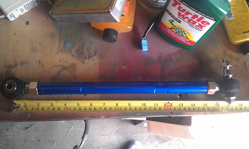 The stock toe arm is right about 17" from center of the joint to the center of the whole for the toe adjusting bolt: